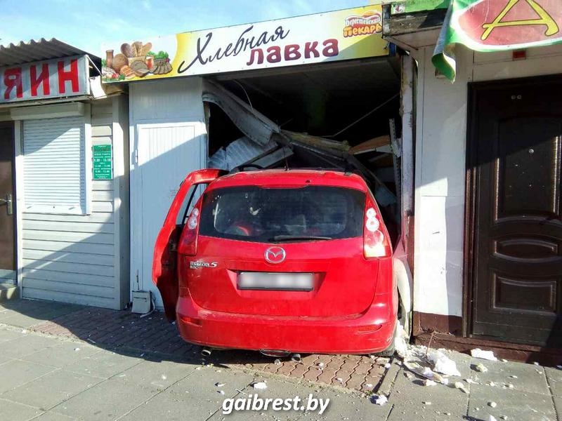 Девушка на красной “мазде“ протаранила “Хлебную лавку“ в Березе. Фотофакт