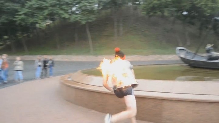 Блогера, который поджег себя, а затем искупался в фонтане, оштрафовали за мелкое хулиганство
