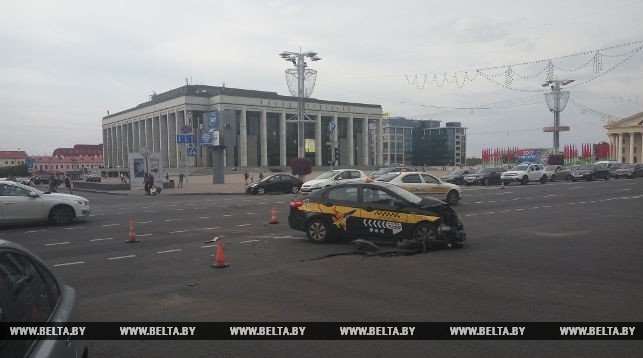 В Минске у Дворца республики столкнулись такси и “Вольво“ с дипломатическими номерами