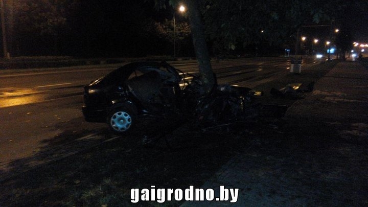 Ночью в Гродно две пьяные подруги катались на Renault и врезались в дерево: одна женщина погибла