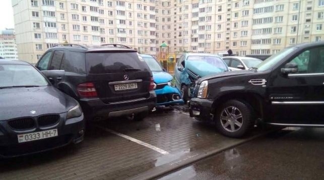 Инцидент произошел сегодня около 16.20 у дома №56 на ул.Матусевича «Водитель за рулем Cadillac Escalade с российскими номерами врезался во дворе в семь припаркованных авто. Пострадавших нет, — рассказала Алена Волчек. — По предварительной информации, водитель находился в состоянии алкогольного опьянения. ГАИ проводит проверку по данному факту».