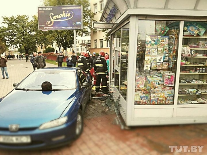 В Минске “Пежо“ врезался в киоск “Белсоюзпечати“ и сбил пешехода