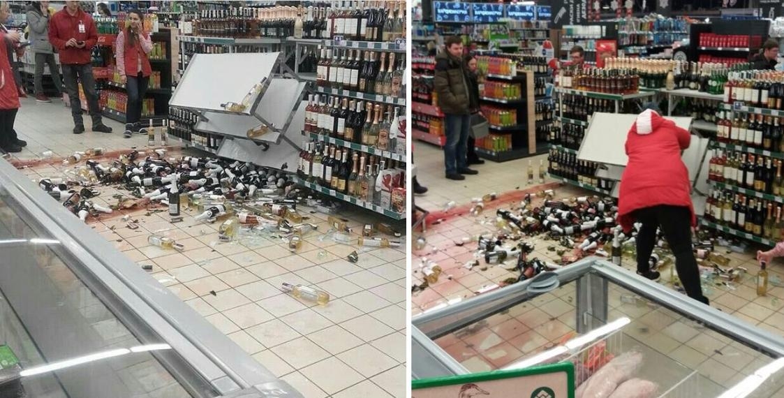 Абсолютно трагический случай произошел в минувшее воскресенье в одном из минских продовольственных магазинов. Посреди торгового зала обрушились полки с алкоголем. На полу оказалось несколько десятков бутылок с вином, передает «Еврорадио».