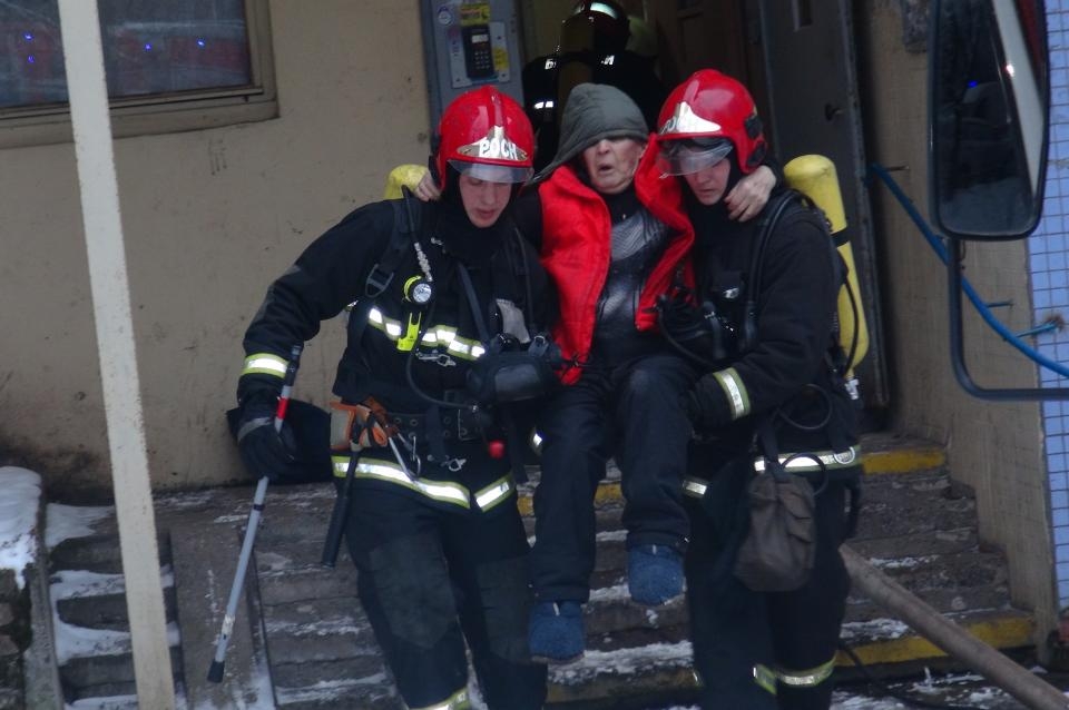 Сотрудники МЧС при помощи масок спасли с верхних этажей девять человек, в том числе одного шестилетнего ребёнка.