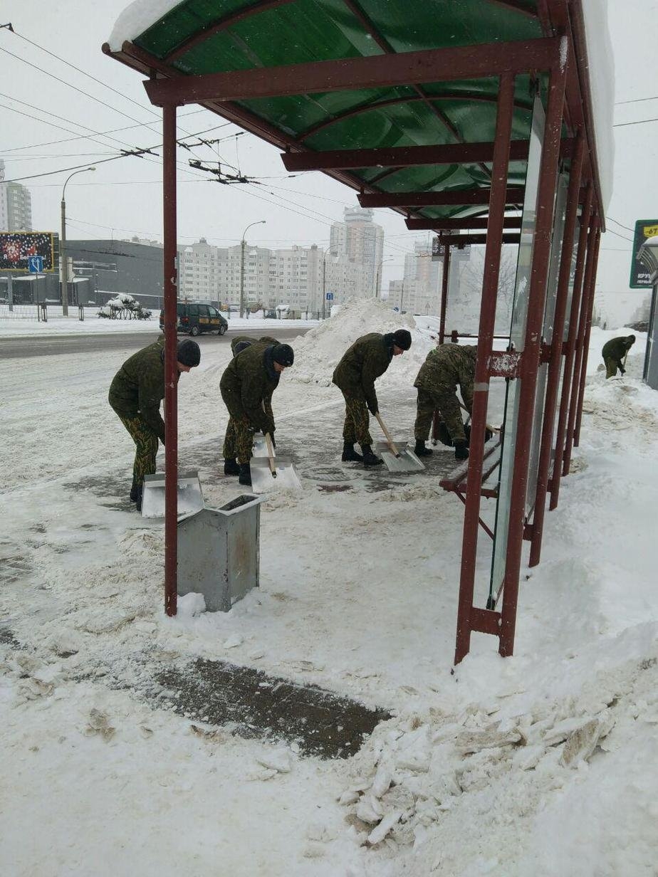 На фото: солдаты работают в микрорайоне Каменная Горка.