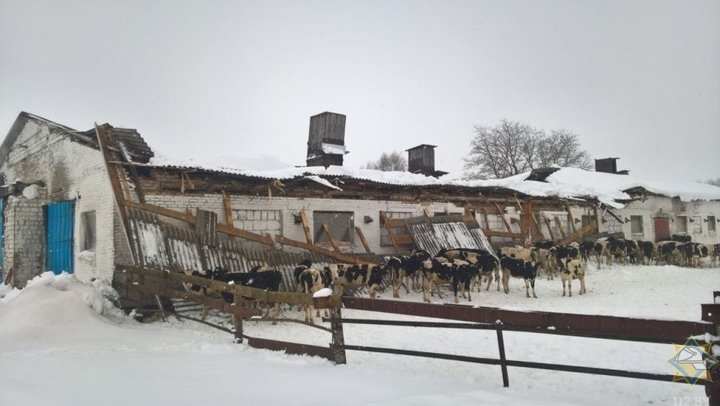 В Могилевской области из-за снега обрушилась крыша на ферме с коровами