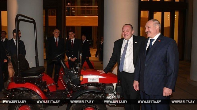 Лукашенко подарил Маргвелашвили трактор 23 марта 2018, 03:26 Фото: БЕЛТА Александр Лукашенко подарил президенту Грузии Гиоргию Маргвелашвили малогабаритный трактор BELARUS-152, сообщает БЕЛТА. Вручение подарка состоялось после официального приема. Читайте также Президент Грузии: Подаренная Лукашенко картошка не уродила Лукашенко рассчитывает на “конструктивный диалог“ с Грузией Лукашенко поздравил Президента Грузии с Днем Независимости Заметили ошибку? Пожалуйста, выделите её и нажмите Ctrl+Enter • UDF ❯ Новости ❯ Общество ❯ Лукашенко подарил Маргвелашвили трактор