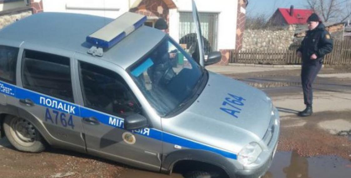 Милицейский автомобиль в Полоцке провалился в яму