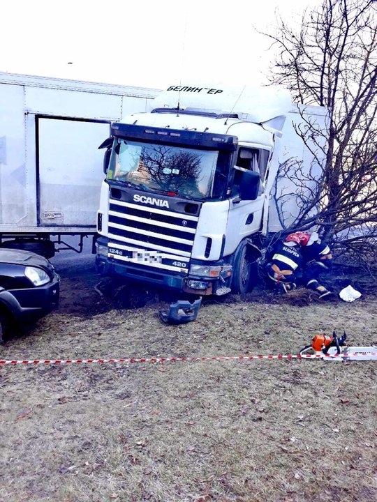 В аварии никто не пострадал, но помощь МЧС действительно была необходима: при столкновении машины зацепили дерево, которое рухнуло на проезжую часть. Спасателям пришлось оперативно убрать его с дороги.