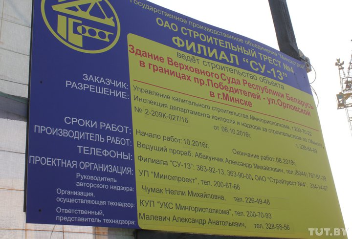 Заказчиком строительства является УКС Мингорсполкома. В официальном ответе за подписью и. о. директора предприятия Александра Яськевича сказано, что сейчас объект готов на 62%. Ввести здание в эксплуатацию планируют в четвертом квартале 2018 года — так сказано в письме.