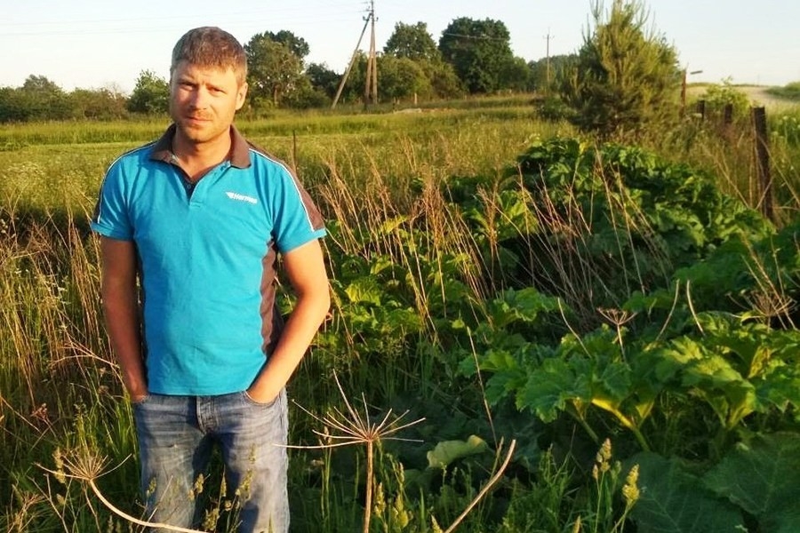Евгений не может самостоятельно справиться с ядовитым растением. Председатель сельсовета Владимир Кушнеревич пообещал помочь, сообщает mlyn.by.