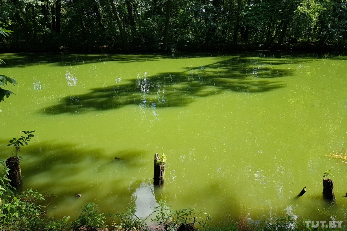 Но еще до этого вода в водоеме стала зеленого цвета. Обычно это происходит в конце июля — начале августа из-за размножения водорослей в жаркую погоду. Подробно об этом процессе мы рассказывали, но с того момента вода стала еще зеленее.
