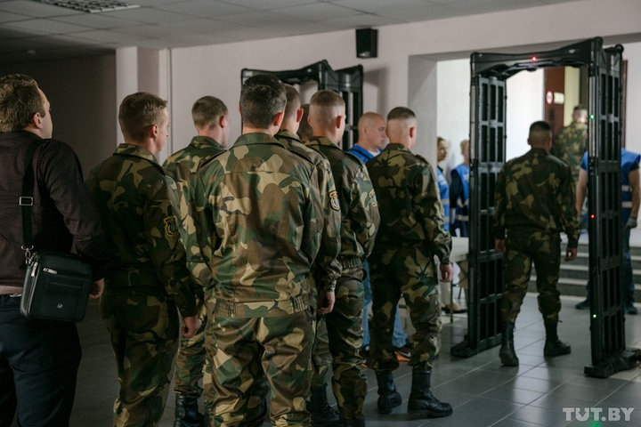 Слушания по громкому делу о гибели рядового Александра Коржича проходят в полупустом зале. Среди присутствующих — журналисты и медики, готовые оказать помощь, если кому-то станет плохо. На первых двух рядах сидят потерпевшие солдаты, их привозят каждый день руководители. Более 20 человек заходят строем в зал, с журналистами не общаются. Только это не все потерпевшие: более 10 человек на процесс просто не приходят. Видимо, это те, кто уже отслужил в армии, и сейчас на гражданке.