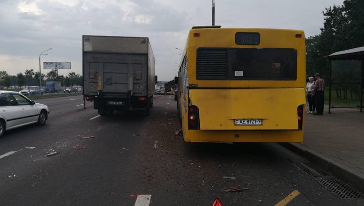 В Минске грузовик врезался в автобус