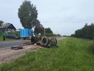 Авария произошла в агрогородке Крево: сельчанин на самодельном тракторе перевернулся на горизонтальном прямом участке дороги. Водитель скончался на месте. Его супругу госпитализировали.
