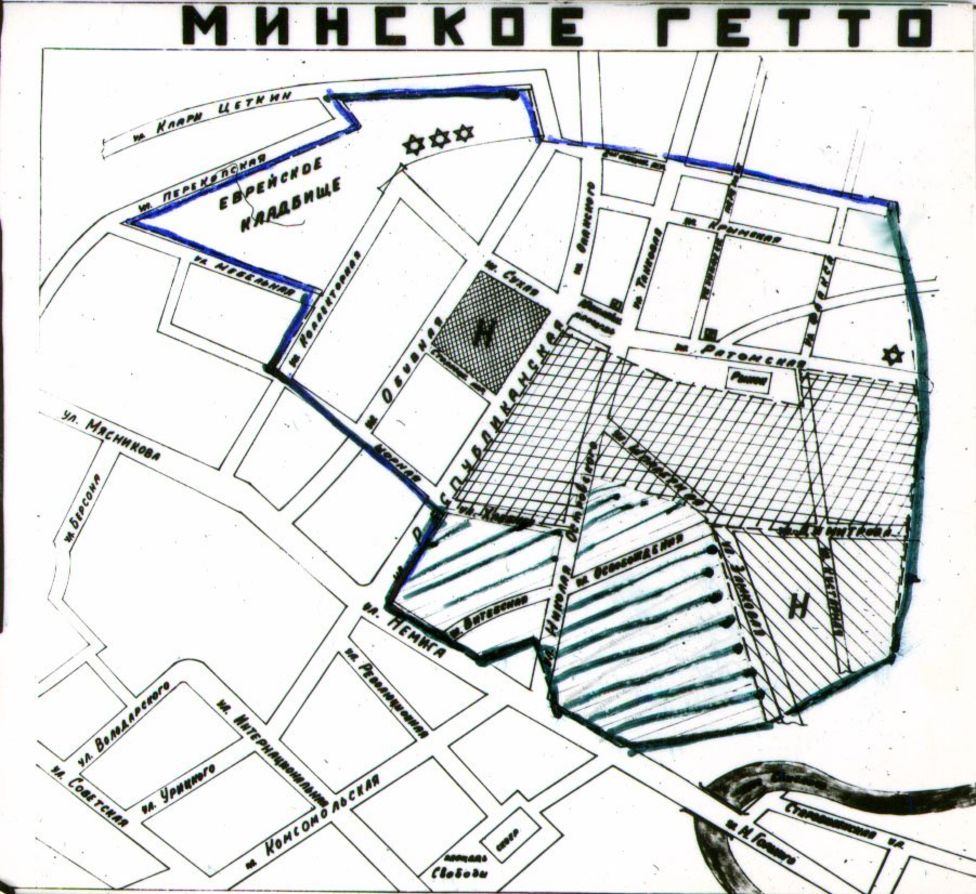 В минском музее истории Великой Отечественной войны хранится план-карта, от руки нарисованная прошедшими через гетто. Звездами Давида обозначены только несколько мест расстрелов, известных автору схемы.