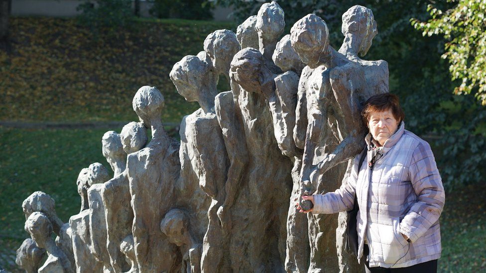 Фрида Рейзман у мемориала "Яма", на месте которого были убиты около 5 тысяч человек