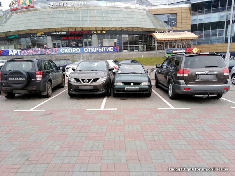 Со сторонней помощью водитель Seat припарковался рядом с Nissan таким образом, что открыть водительскую дверь этой машины стало невозможно. Впрочем, оставить машину на этом месте и никому не помешать, наверное, было бы невозможно: припаркуйся водитель дальше от Nissan, и проблемы с тем, как попасть в свою машину, возникли бы у водителя Kia.