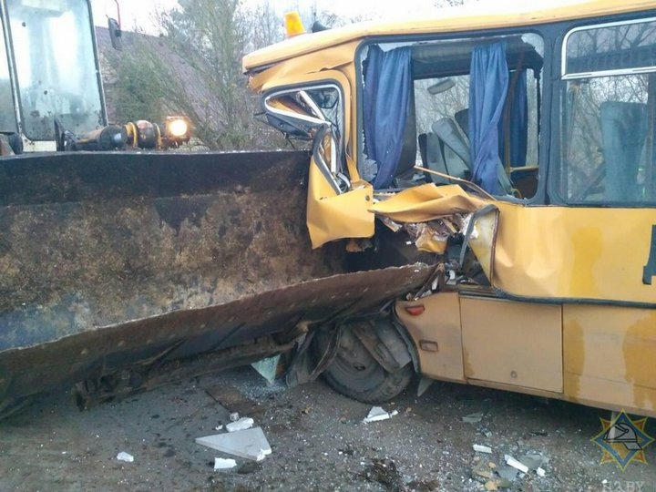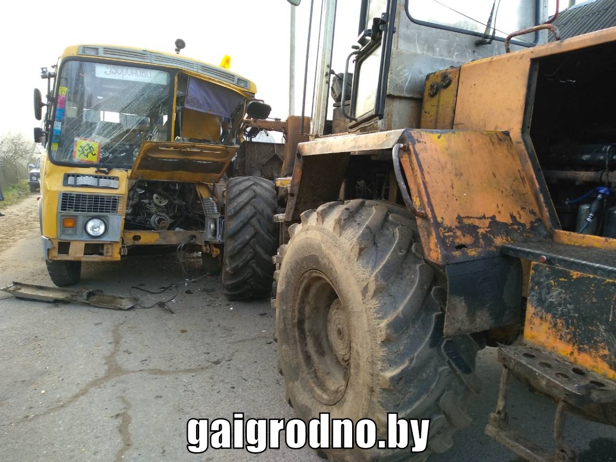 Авария произошла утром 9 ноября. По предварительной информации, водитель автобуса в условиях тумана выехал на полосу встречного движения и врезался в погрузчик «Амкодор».