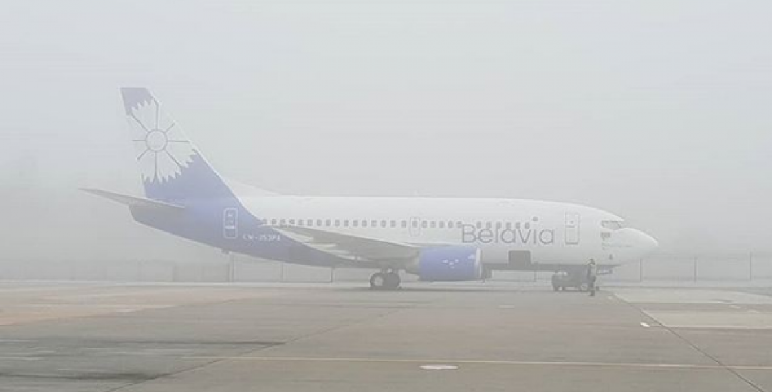 @laserv26 опубликовал в своём профиле ещё несколько снимков из туманного минского аэропорта. На одном из них — самолёт "Белавиа" в фирменной "васильковой" ливрее, на другом — борт, которым прибыли в Минск футболисты лондонского "Челси":