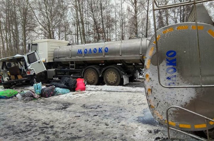 Напомним, авария произошла 14 ноября около 10.55 на 176-м км трассы М10 Граница РФ — Гомель — Кобрин. Микроавтобус VW Transporter под управлением 30-летнего водителя выехал на полосу встречного движения, где столкнулся с молоковозом.