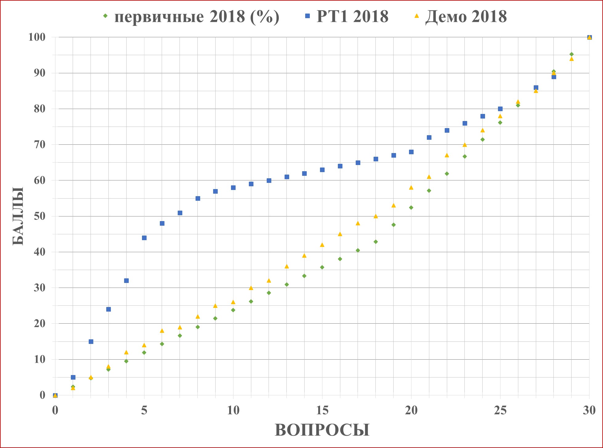 Учитель физики Александр Сакович сравнил результаты теста по физике по старой и новой методике. Если у решивших больше 20 заданий из 30 результаты баллов примерно одинаковые, то у тех, кто справился с 5-15 заданиями, они отличаются в два раза. К примеру, раньше за 11 из 30 решенных задач испытуемый получил бы 30 баллов, а с новой системой оценки все 60. А тот, кто справился с 20 из 30 заданий – всего лишь на 7 баллов больше.