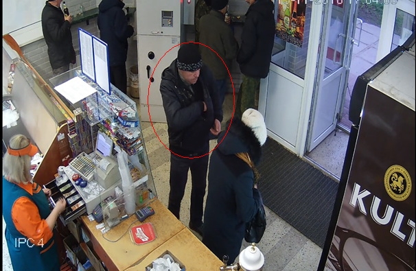 Мужчину засняла камера видеонаблюдения, когда он покупал в магазине выпивку.