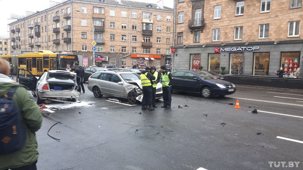 Авария произошла днем 5 декабря на улице Московской. Как сообщили в ГАИ Минска, водитель BMW ехал со стороны улицы Чкалова в направлении проспекта Независимости. В районе дома номер 14 он не справился с управлением, выехал на полосу встречного движения и совершил столкновение с тремя автомобилями: Mercedes, Subaru и Volkswagen.