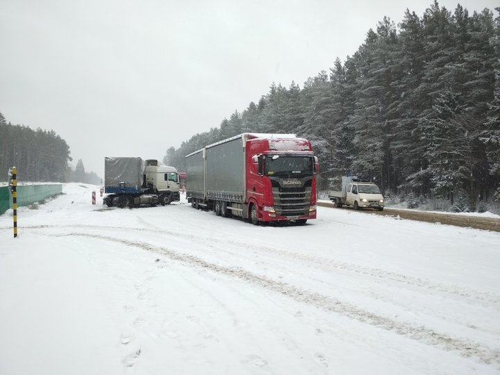 На Гродненщине — сильный снегопад. На М6 из-за аварии затруднено движение