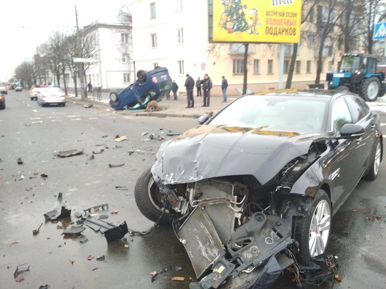 В Минске Volkswagen перевернулся после столкновения с Jaguar
