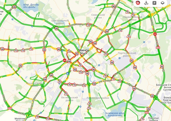 В вечерний час пик Минск застрял в 10-балльных пробках