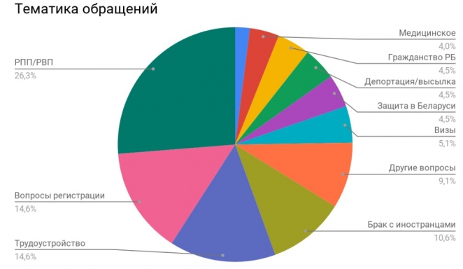 Тем временем, есть целый список недочетов белорусских законов и традиций работы с иностранцами, которые приводят к нарушению их прав, показала работа общественной приемной для иностранных граждан и лиц без гражданства Human Constanta в Минске за 2018 год.