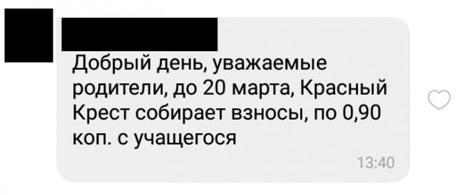 "Откуда цифра в 90 копеек, я не знаю. Возможно, так решили в классе, что будут сдавать именно эту сумму. Возможно, так решила учительница, которая собирает деньги с класса. Но эти взносы полностью добровольные. Если речь о пятом классе, то это точно не членские взносы".