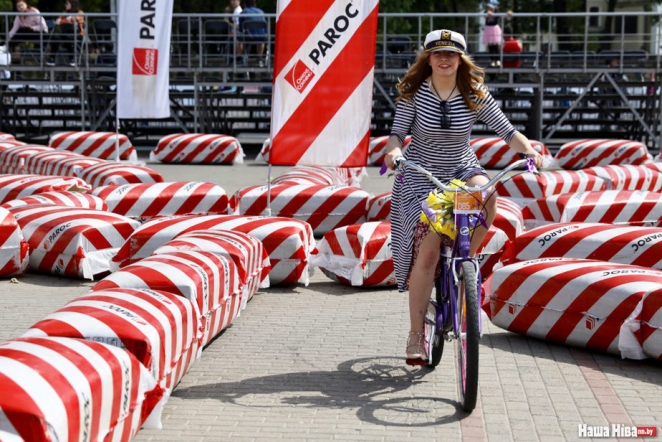 Беременная девушка пришла на велогонку на высоких каблуках