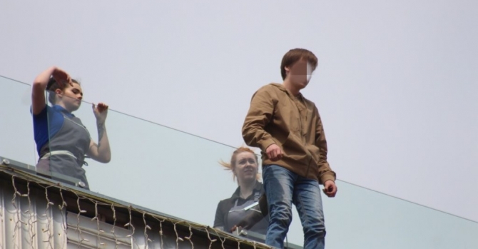 Инцидент произошел 13 мая около 11:30. Молодой человек собрался спрыгнуть с крыши ТД «Неман», где находится кафе «Крыша мира».