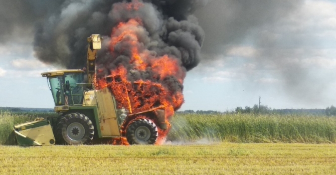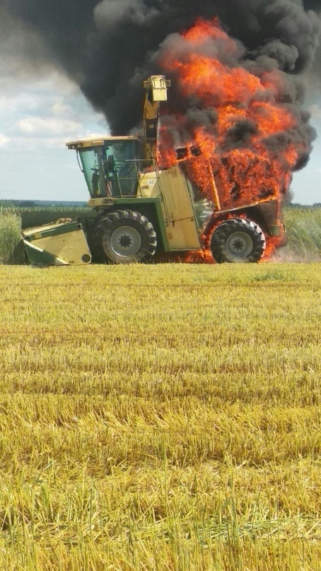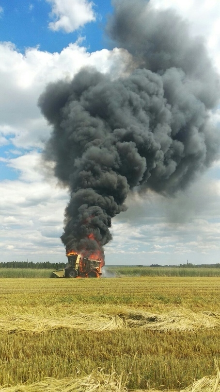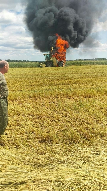 Видели как полыхает комбайн? В Рогачёве сегодня сгорел один, смотрите