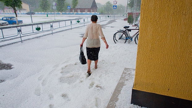 6 июня в Вилейке внезапно начался сильный ливень, и сразу же с неба посыпался град.