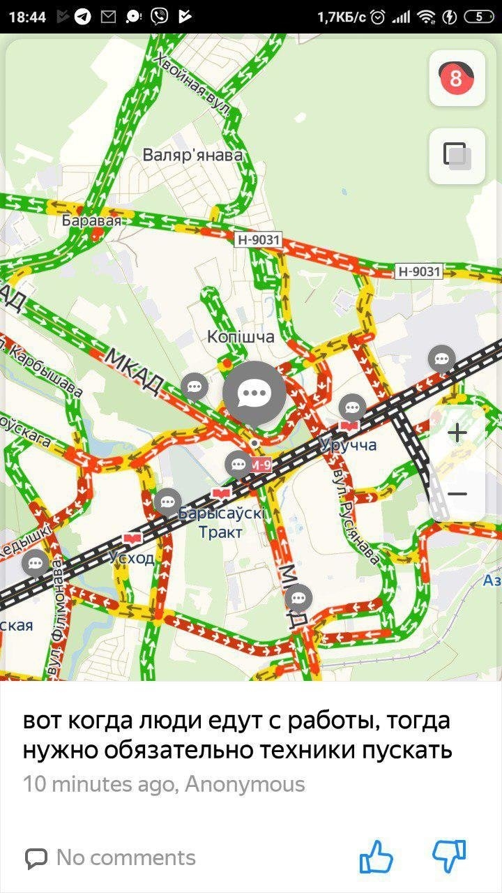Из-за репетиции парада Минск остановился в 9-балльных пробках. Автомобилисты негодуют