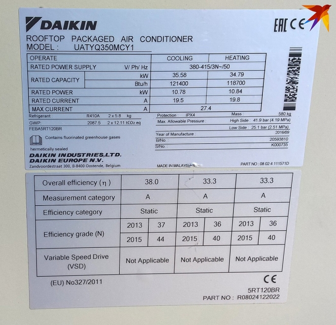 Такой кондиционер обычно устанавливают на крышу, он может охлаждать воздух в помещении площадью 100 квадратных метров. Цена такого кондиционера — около 20 тысяч евро.