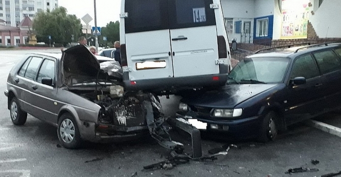 В Мозыре в результате ДТП образовалась пирамида из трех авто