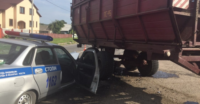 В Столинском районе автомобиль ГАИ попал под прицеп трактора: пострадали два милиционера