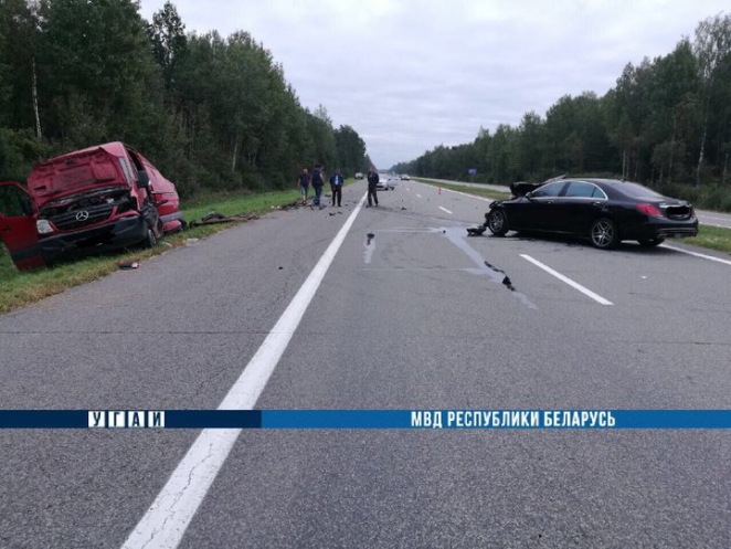 ДТП произошло на 412-м км трассы М1. Легковой автомобиль Mercedes 500 на российских номерах столкнулся с микроавтобусом Mercedes Sprinter, сообщила официальный представитель МВД Ольга Чемоданова.
