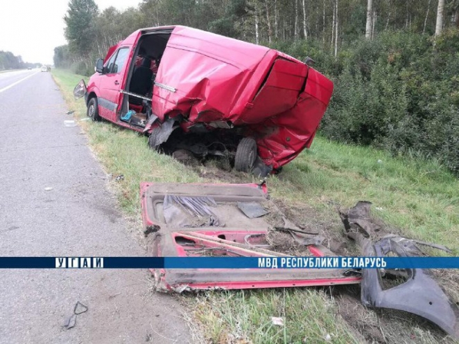 В Смолевичском районе Mercedes въехал в стоящий на обочине микроавтобус с пассажирами