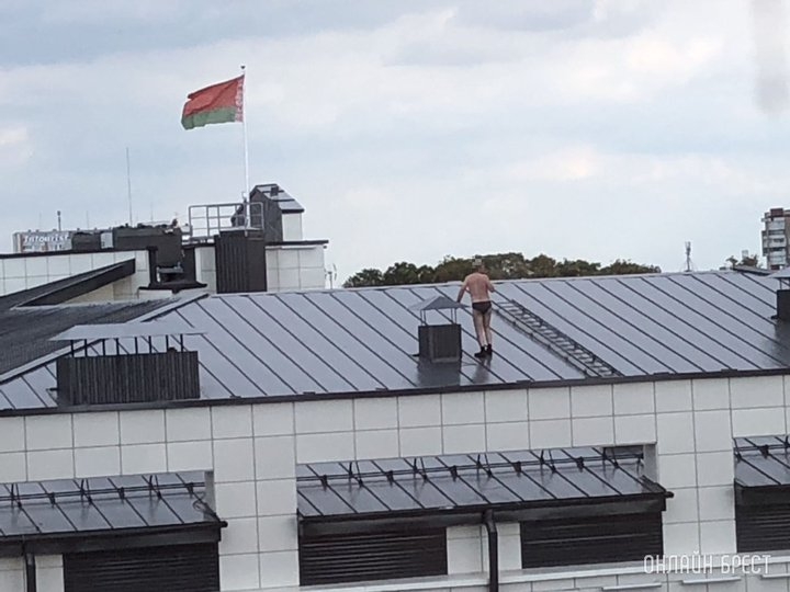 На днях на крыше Дома правосудия в Бресте был замечен полуголый мужчина. Фотографии, сделанные из соседнего офисного здания, выложили в паблике Онлайн Брест.
