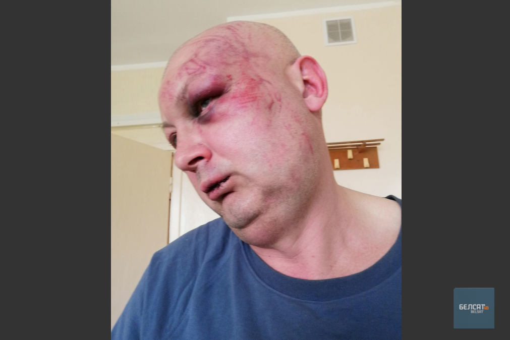 Виталий Сорока после избиения. На голове виден след от ботинка