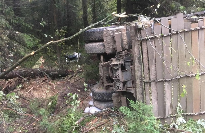 Спиленное дерево упало на грузовик в лесу под Борисовом - водитель погиб