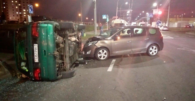 В Сухарево Peugeot проехал на жёлтый и опрокинул Renault