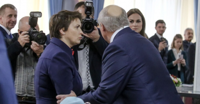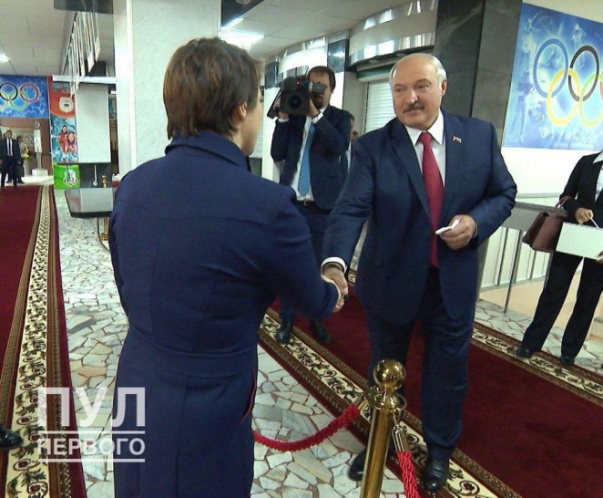 Встреча произошла на участке в Белорусском государственном университете физической культуры, где голосовал Александр Лукашенко.