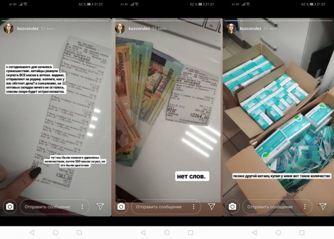 «Китайцы рванули скупать все маски в аптеке. Наверное, присылают на родину», – отмечает провизор одной из минских аптек в Instagram.