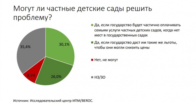Еще 26% считают этот вариант возможным, если государство даст частным садам такие же льготы, чтобы они могли снизить цены.